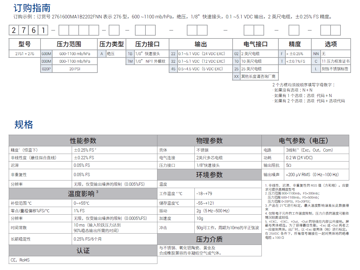• 出色的长期稳定性:0.25% FS/6 个月 • 快速响应