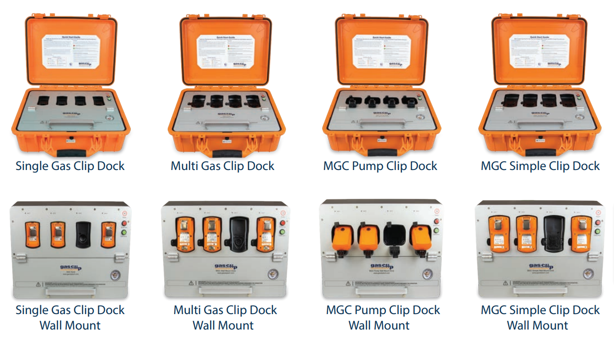 每个Clip基座都针对特定的检测仪: Single Gas Clip Dock - Single Gas Clip & Single Gas Clip Plus Multi Gas Clip Dock - Multi Gas Clip MGC Pump Clip Dock - MGC Pump MGC Simple Clip Dock - MGC Simple & MGC Simple Plus |