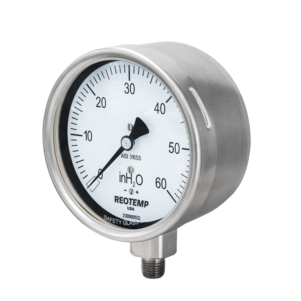 REOTEMP的PCS系列低压压力表可提供准确可靠的气体介质测量。该系列产品采用不锈钢内件,可承受腐蚀性介质并确保仪器使用寿命。