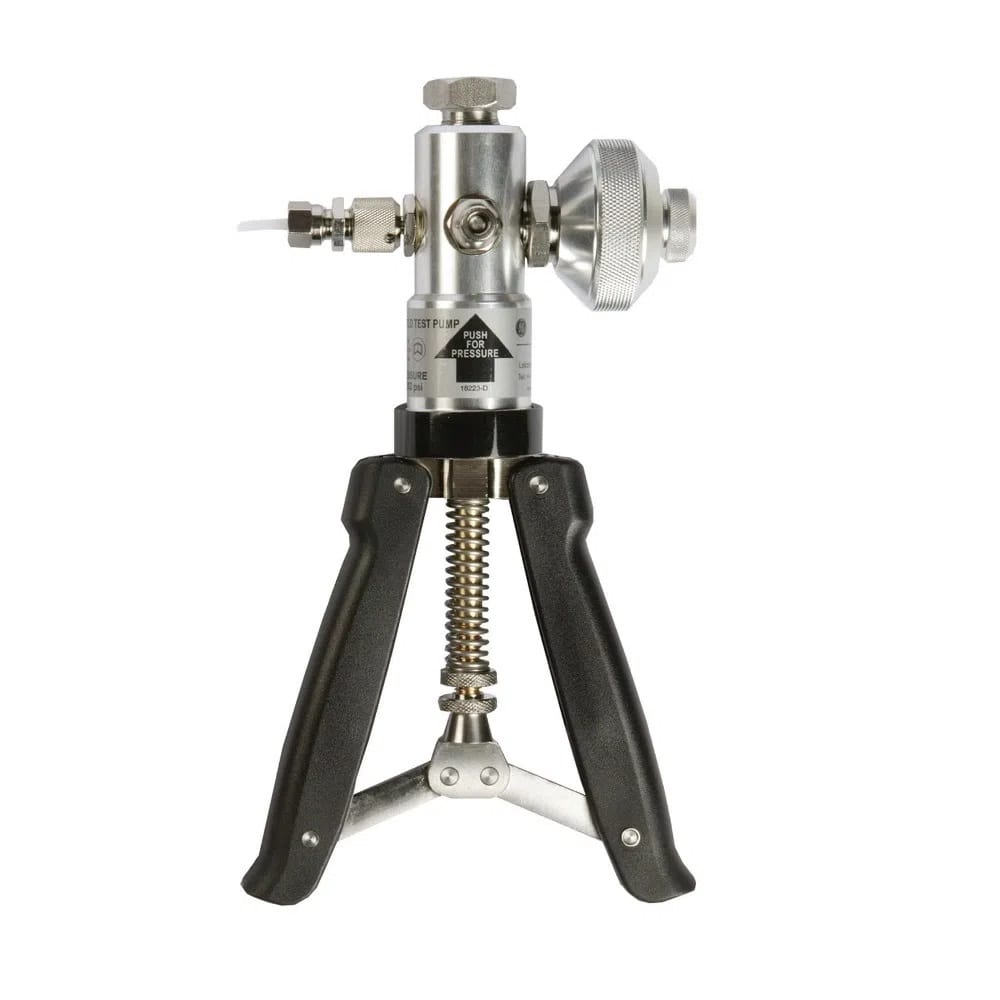 手泵装在便携箱内,长度为3英尺、直径为1/8″弹性尼龙软管、压力转换接头和附件