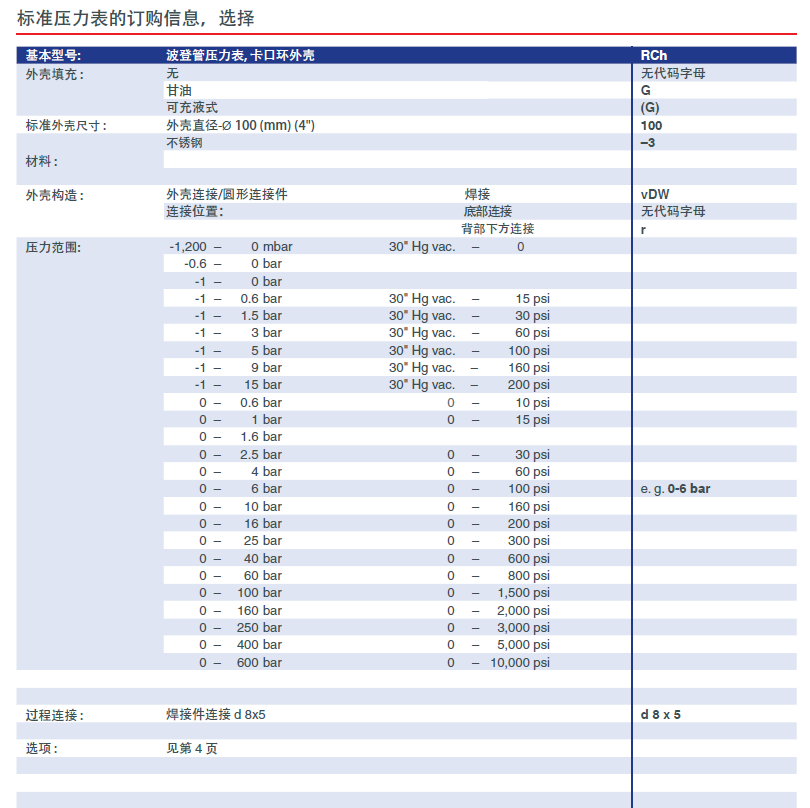 RCh100-3vDW波登管压力表