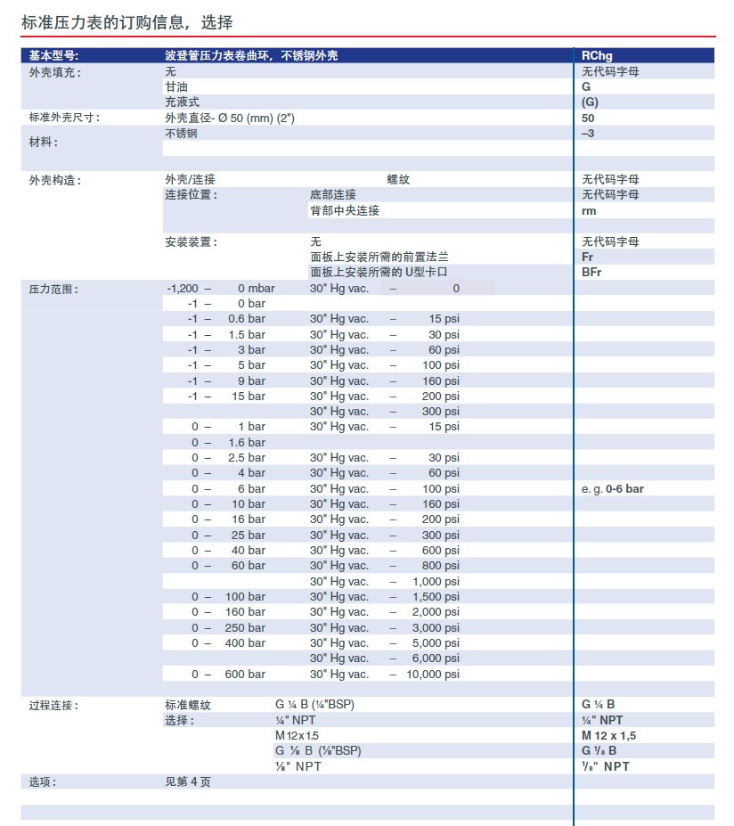 RChg 50波登管压力表