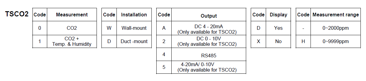 *TSCO2 系列适用于一般室内用途。如需工业或农业等特殊应用,请联系我们。